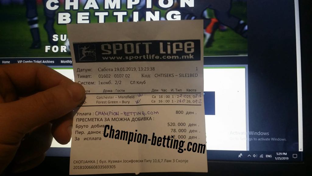 19.01.2019 Colchester – Mansfield 1/2 25.00 2:0/2:3